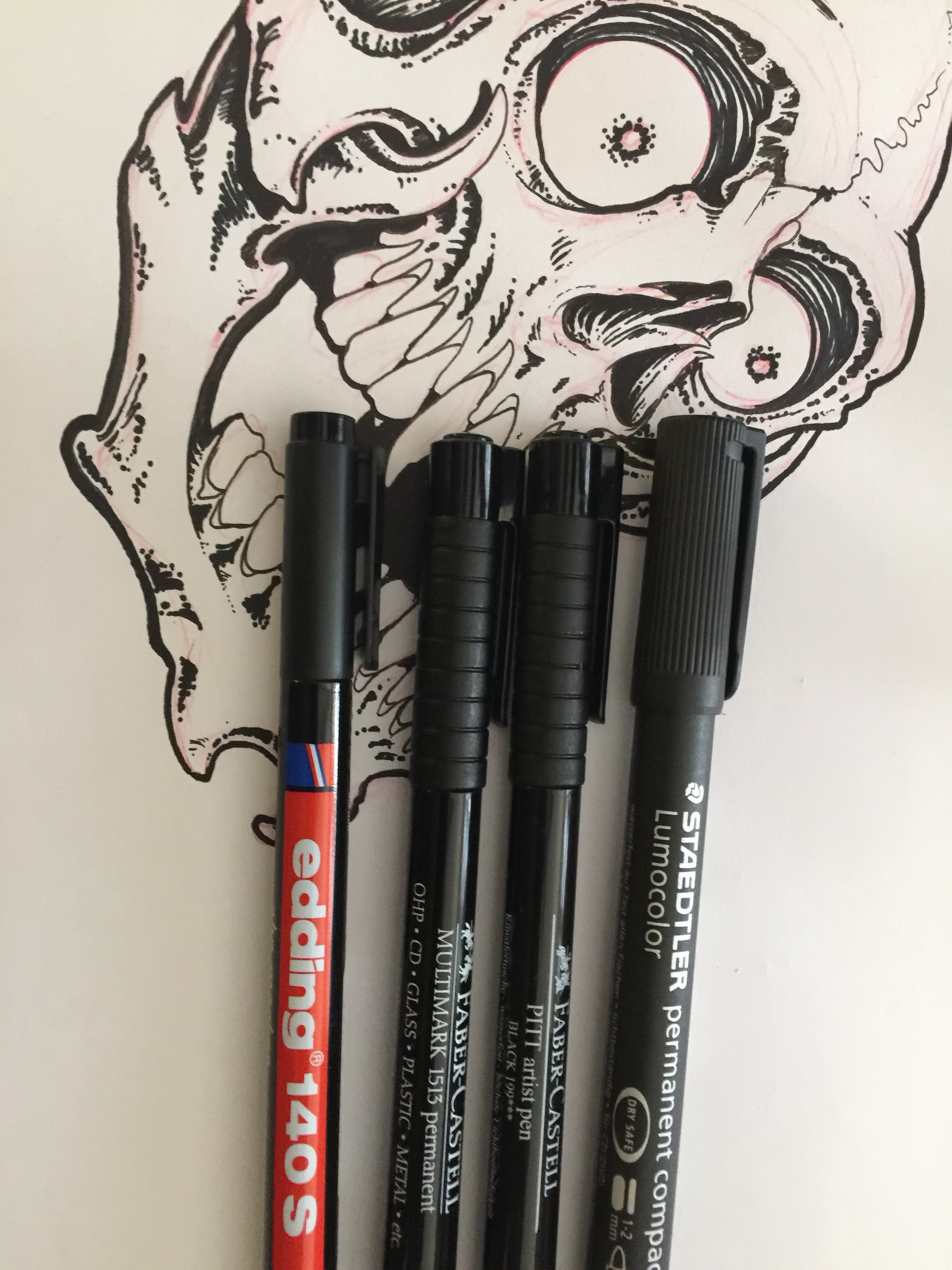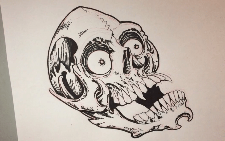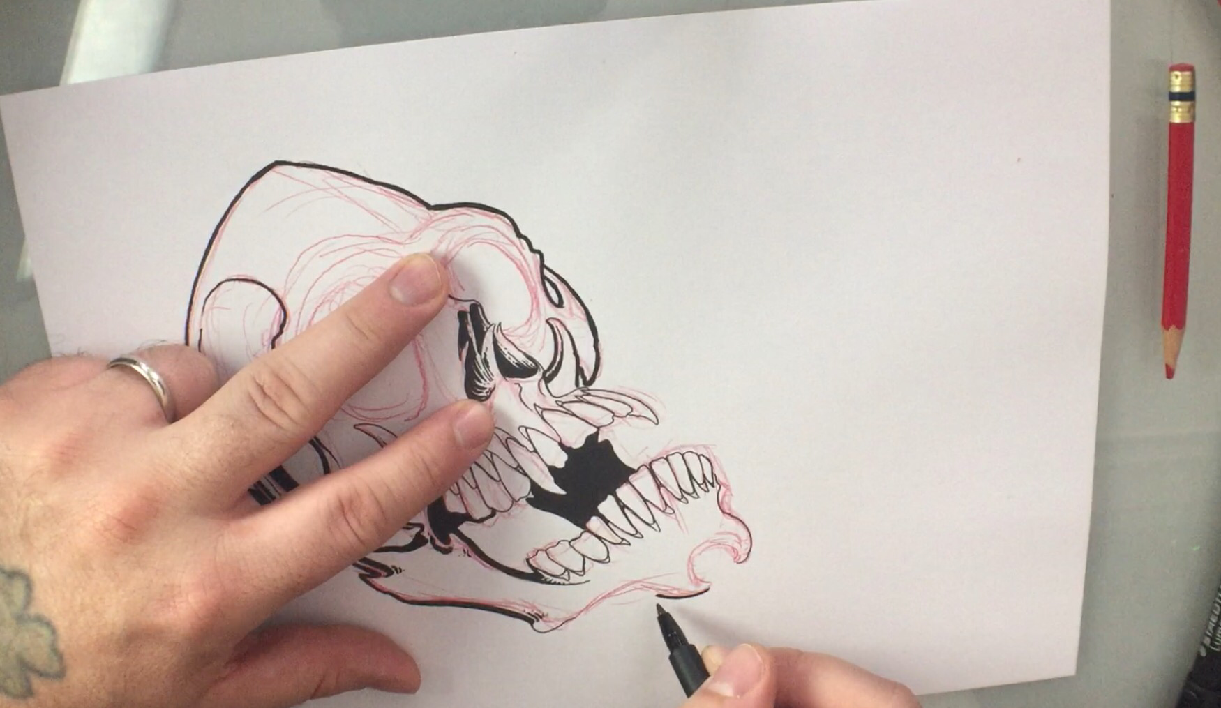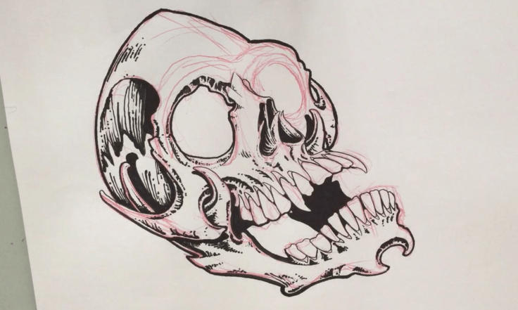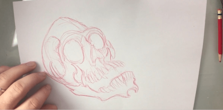 So I drew this skull, first I started sketching with an erasable pencil. Well a Col-Erase Carmine Red pencil to be exact. This is my favorite pencil, it is a good dark shade of read, works smoothly and layers nicely. I could talk all day about this Pencil.